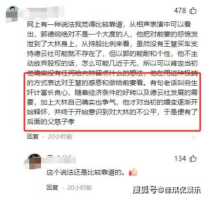 而评论区还有其他声音,其中有一条留言是这样说的,郭德纲之前对郭麒麟这么严厉,完全是因为对前妻的怨恨,一开始他根本没想给大儿子留下点什么。