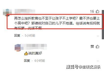 有网友看不下去表示:“再怎么挫折教育也不至于让孩子不上学吧?郭德纲对自己的儿子不地道,俗话说有后妈就有后爹。”