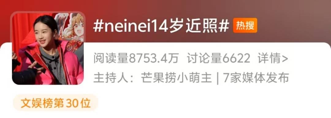今天,小编在热搜上看到了#neinei14岁近照,让人不禁感慨,时间过得真快,当年的小女孩已出落得亭亭玉立。