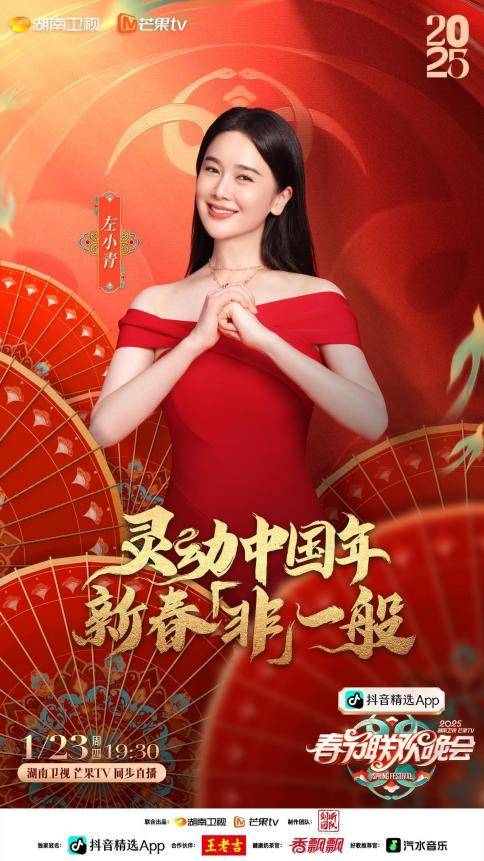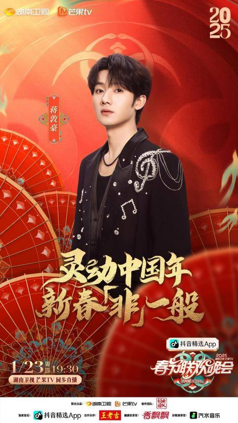 由湖南卫视刘昕团队打造的抖音精选《2025湖南卫视芒果TV春节联欢晚会》将于1月23日19:30在湖南卫视、芒果TV同步直播。本次小年夜春晚以“灵动中国年,新春非一般”为主题,融汇123种非遗元素,以非遗为笔,文化为墨,绘就出一场 “非” 同一般的春色。而众多闪耀嘉宾的加盟,更是为小年夜春晚增色不少。本次春晚嘉宾阵容精彩多元,既有初次相逢的新鲜活力,也有长久陪伴的熟稔默契,更有一直常驻的温暖守候。还等什么?快来和湖南春晚一起解锁新春惊喜吧!