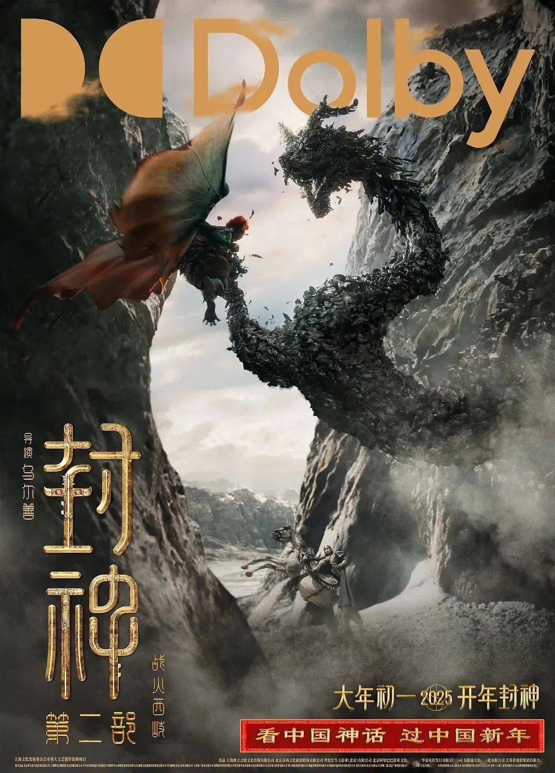 杜比影院通过杜比视界绚丽生动的画面和杜比全景声的沉浸式音频,带给观众极致的视听体验。 在目前大年初一杜比影院的排片占比中,由《封神第二部》拔得头筹,拿下超过40%的排片量。
