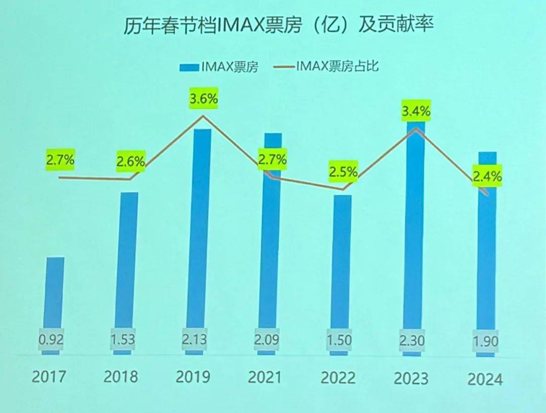 2023年春节档IMAX票房达2.3亿,为历年票房最高;2019年春节档IMAX票房占比为3.6%,为历年票房贡献率最高。 2025年春节档迎来了IMAX含量最高的一年: