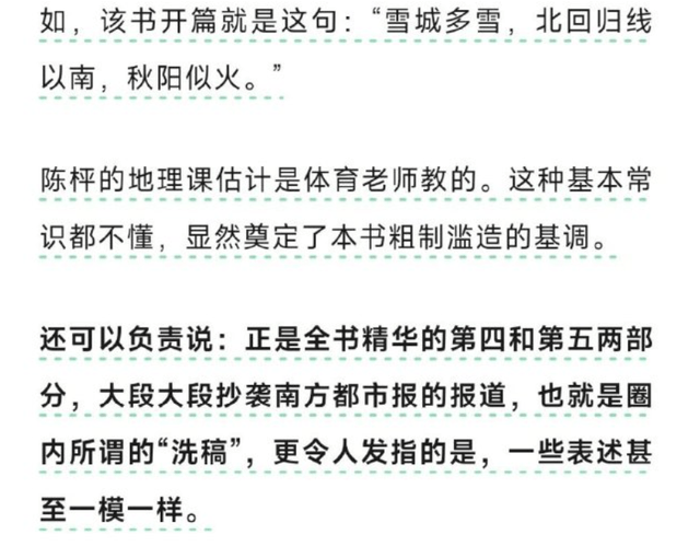 除了这几点之外,其他也都是大量被猛哥认为是“洗稿”的相似表述和相近桥段。如果陈枰不能拿出自己当初调查走访、搜集资料的有力证据,确实很难洗脱抄袭嫌疑。