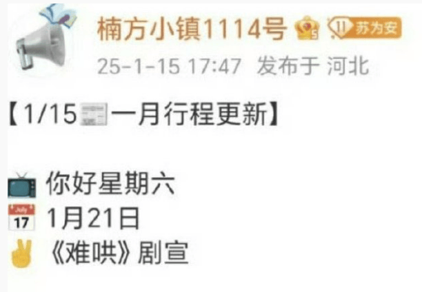有爆料称剧组要一块去录制1.21号的《你好星期六》
