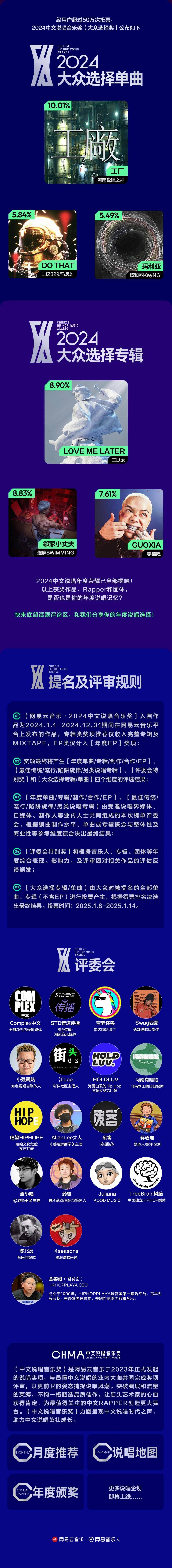 网易云2024年中文说唱音乐奖各大奖项今日揭晓!