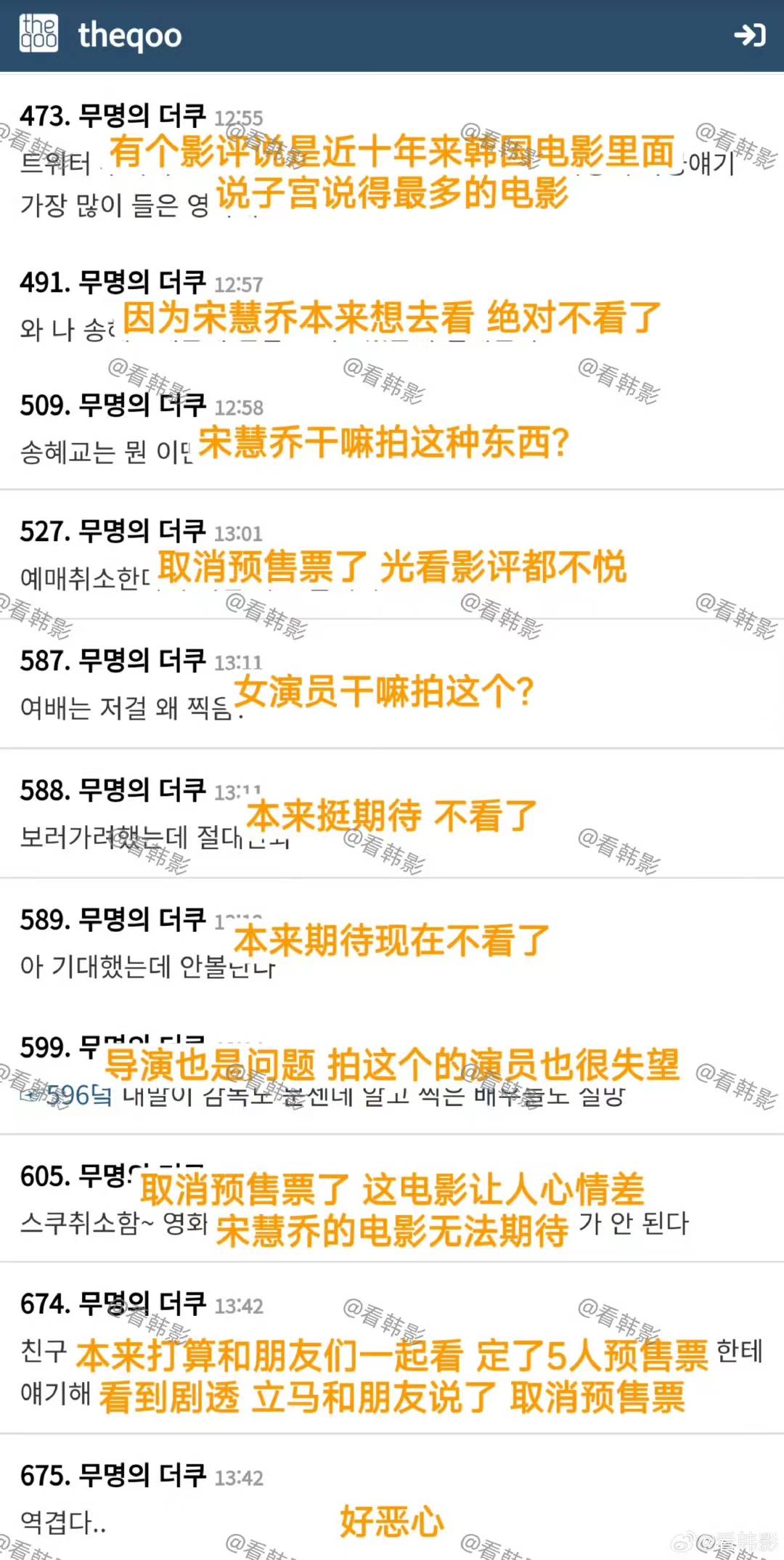 韩国网友表示无法理解宋慧乔为什么会拍摄这样的电影,完全就是贬低和歧视女性,看了电影让人心情不好,所以取消了订票。