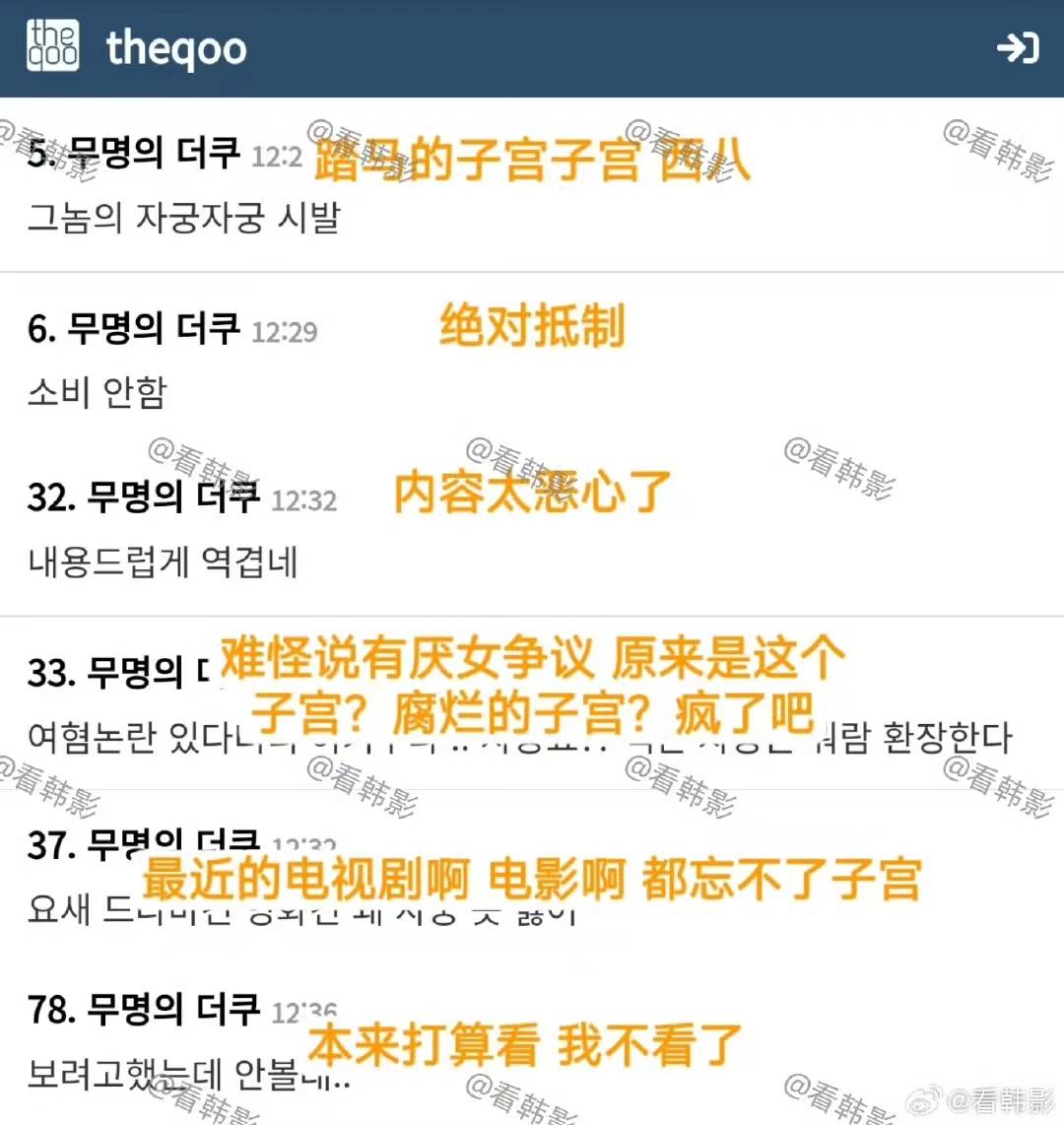 因为试映被剧透,韩国网友们看到都表示要抵制不去观看,认为当前韩国影视剧作品都很厌女,很多表示不想看。