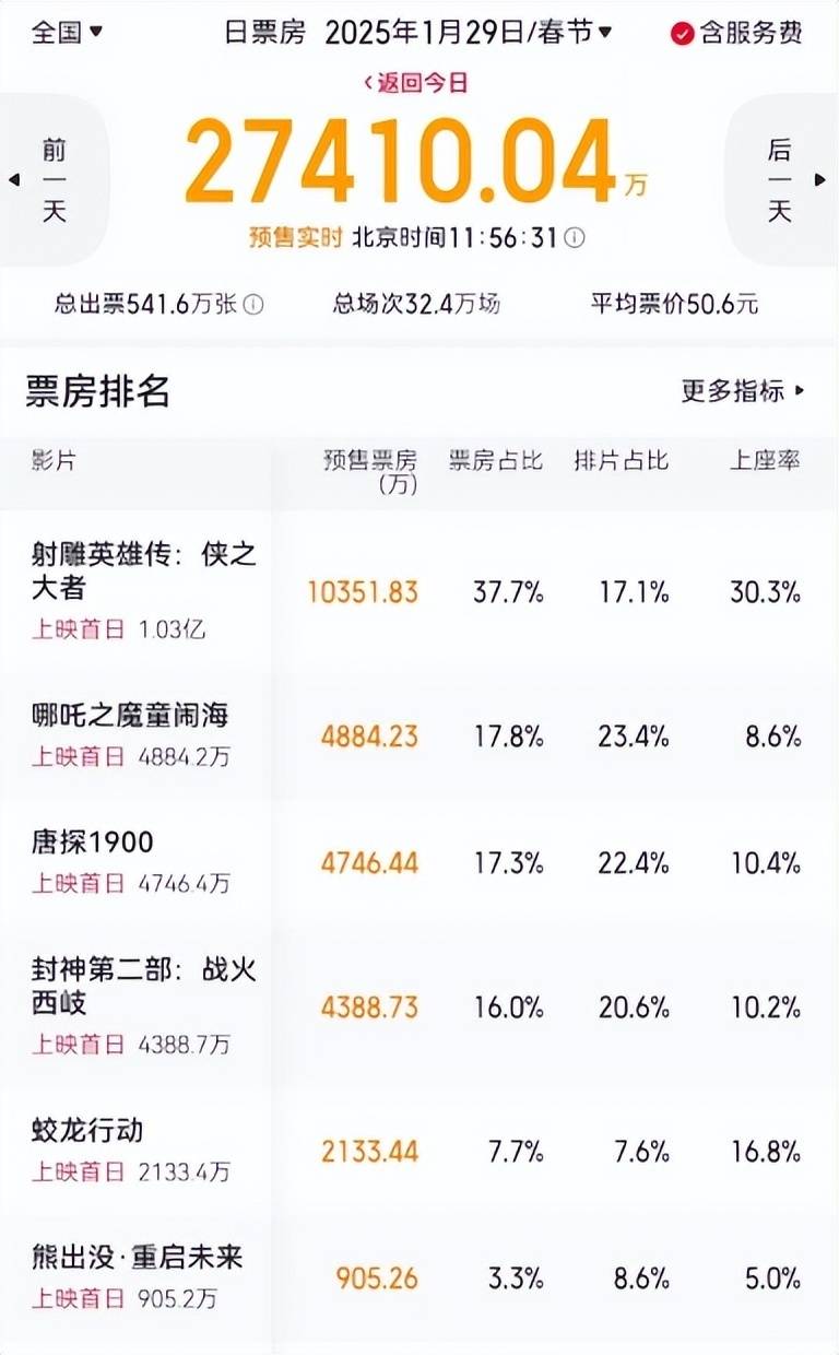 当然,乐观点看,至少目前《射雕英雄传》还有超过17%的排片,比吊车尾的《蛟龙行动》好多了,今年春节档六部电影,《蛟龙行动》很可能是制作成本投入第二高的电影,仅次于《封神2》,处境更为艰难,想要逆袭,比《射雕英雄传》保住第一的难度更高。