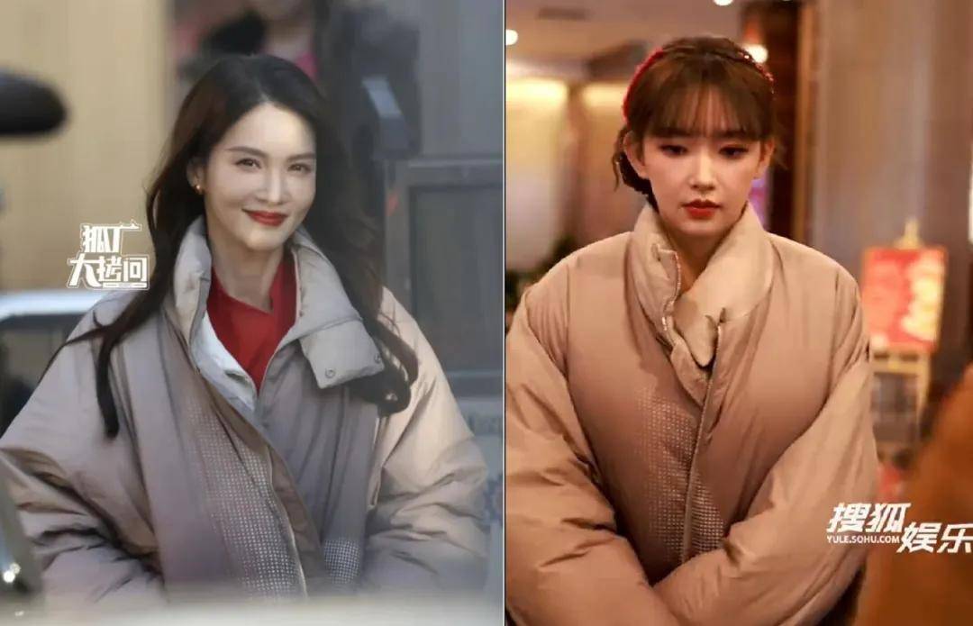这件羽绒外套,金晨是在第三次联排时穿的,而程潇是在第四次联排才穿。按理说程潇稍微留意一下就能避免撞衫,难道她有心要跟金晨比一比?