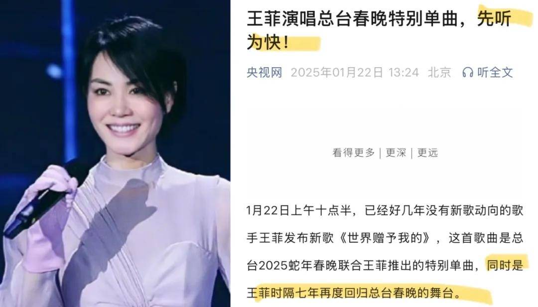 不过很快央视春晚就发布了联合王菲推出的特别单曲《世界赠予我的》,并且官宣了她将第五次登上春晚舞台的消息。