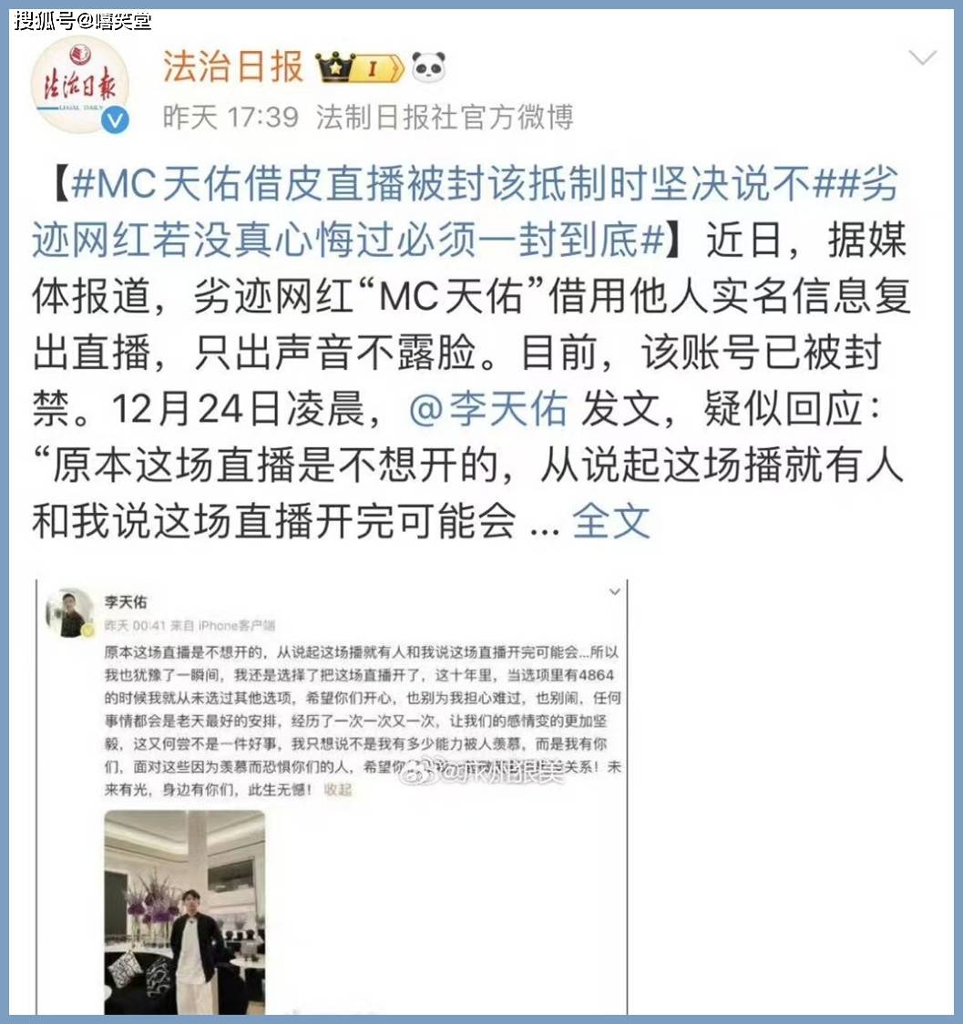 就在最近,天佑借用他人实名信息复出直播,尝试用只出声音不露脸的方式直播。