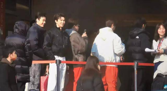 首先就是0713男团们的成员,张远和苏醒一起,苏醒穿着卡通图案的羽绒服,显得特别年轻,他一直和旁边的工作人员聊天。张远也穿着白色羽绒服,他看到了镜头,还挥着手和粉丝们打招呼。