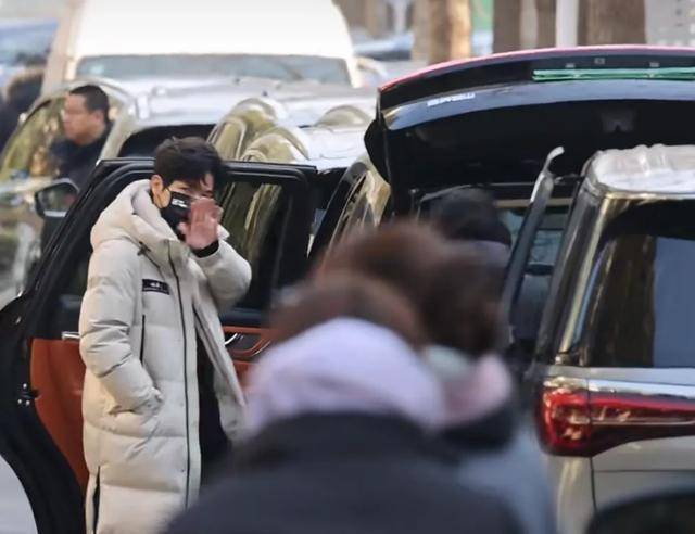 陆虎穿着黑色羽绒服,搭配牛仔裤,看到有粉丝在拍摄后,他挥着手打招呼,还给远道而来,等待的粉丝们弯腰鞠躬,特别有礼貌。