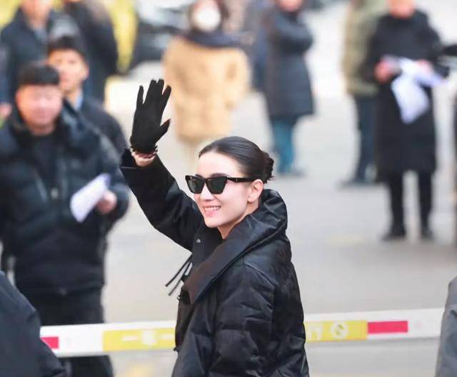 演员阿如那也在门口给粉丝签名,看起来心情很好,挥手和大家打招呼。