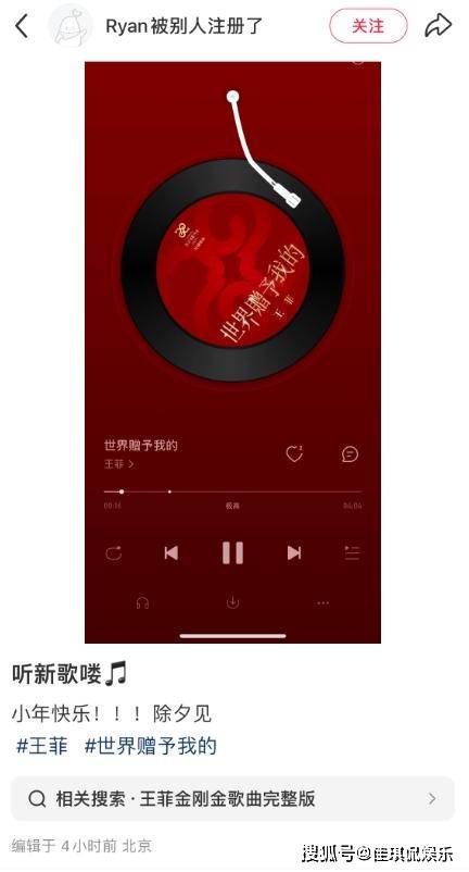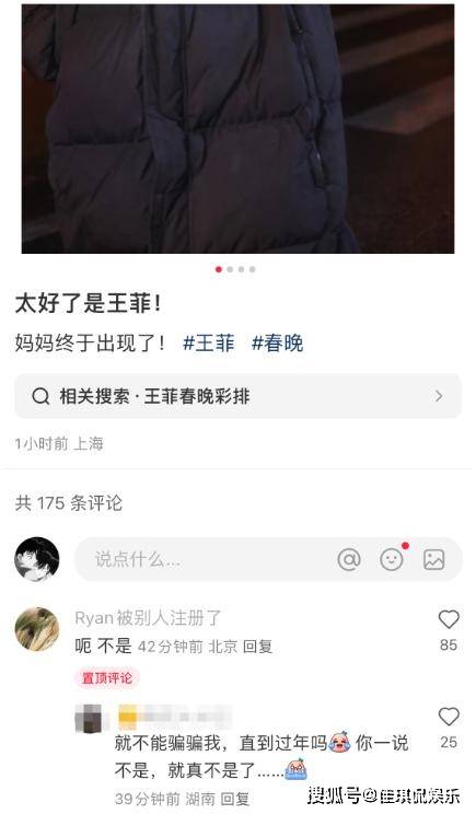 话说回来,该消息出现没过多久,昨晚否认王菲现身春晚的好友,也在社媒发文直呼“听新歌”。