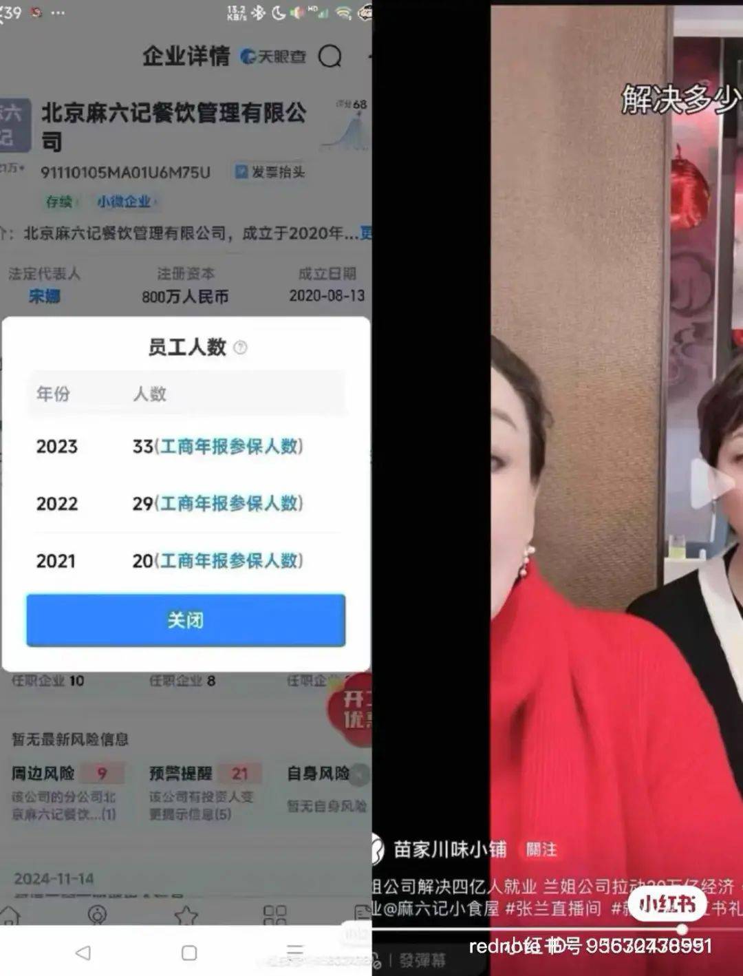 张兰在直播时,反复强调自己是一个良心企业家,解决了4亿人就业,带动了20万亿的经济。