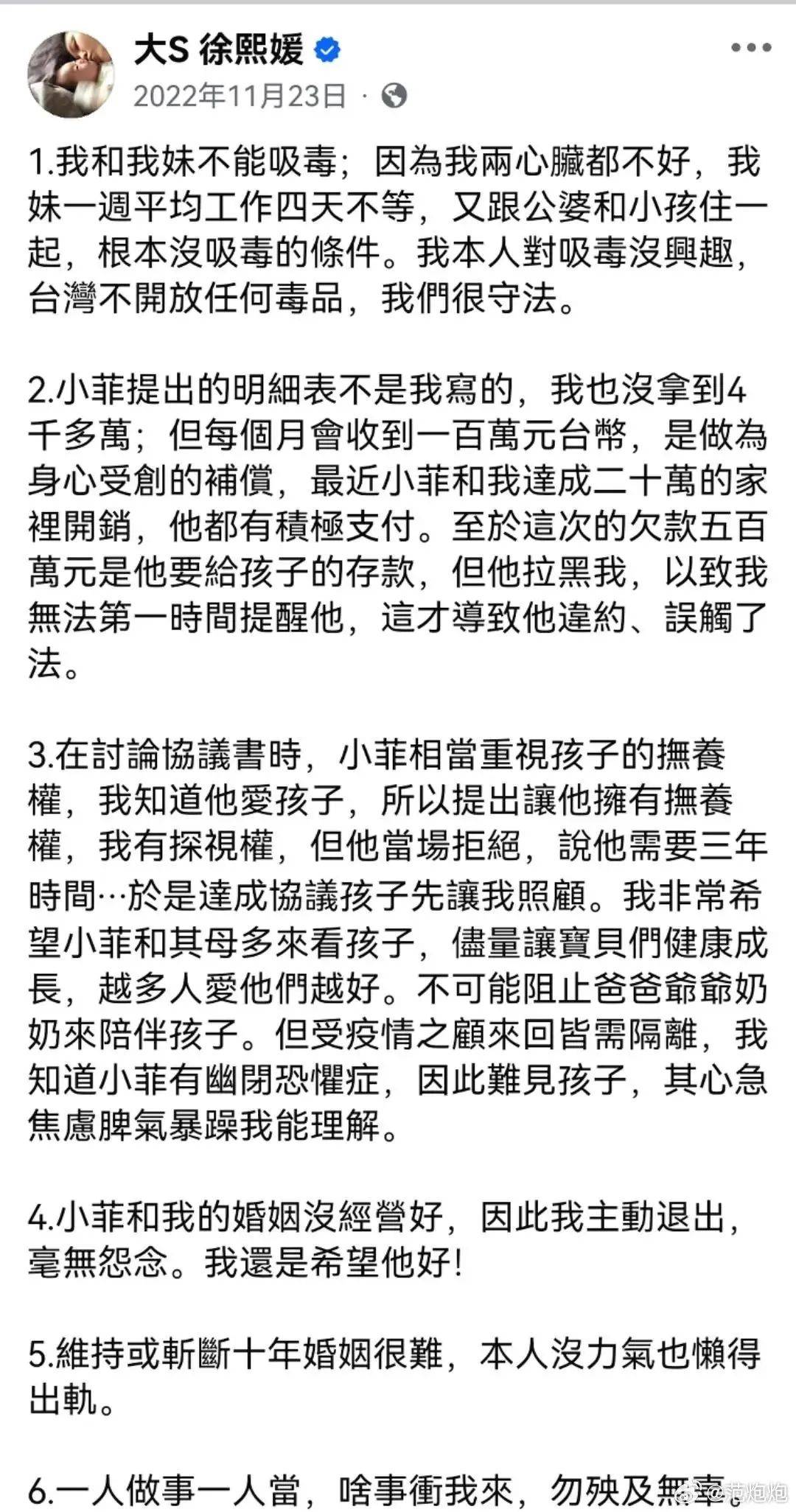 搞到大S这两年的社交平台上,基本都是声明和辟谣。