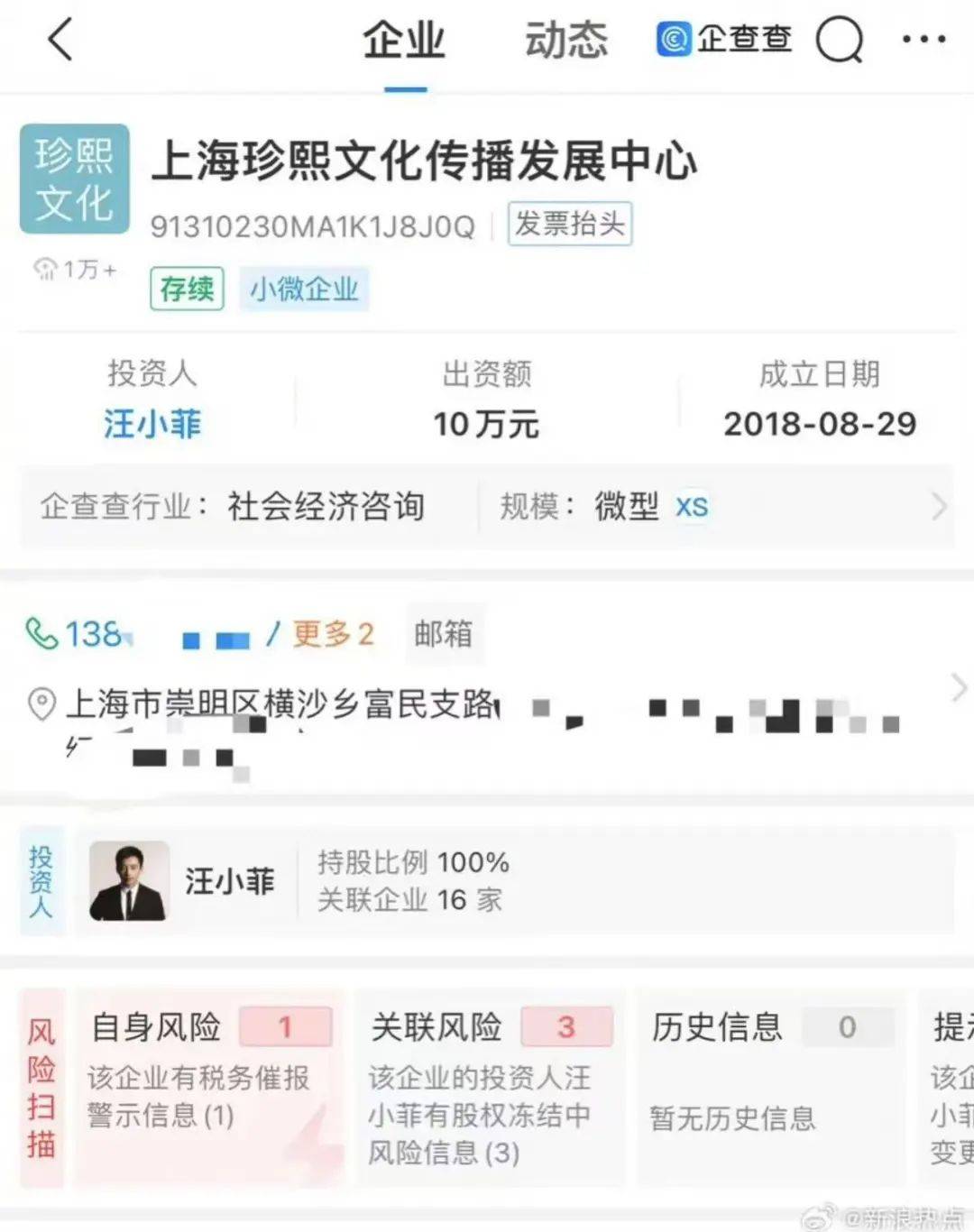 好笑的是,这个黑子公司,实控人是汪小菲。