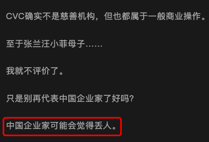 以至于上文的法律博主说到,别代表中国企业家了好吗?脸都被丢光了。