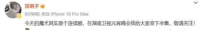 对此,不少网友质疑邓男子魔术表演失误,对此邓男子发文回应称这个魔术会有下半集,将在元宵晚会上呈现。汪涵和齐思钧也在主持春晚期间表示“晚会做成连续剧,男子的舞台他未完待续。”