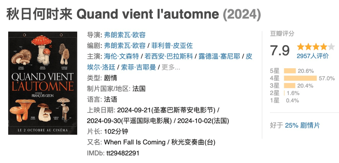 法国导演弗朗索瓦·欧容的新片,去年也陆陆续续亮相了很多电影节展,欧容的片子,大多质量都还是很不错的,这部也有7.9分,是值得推荐的一部新片。