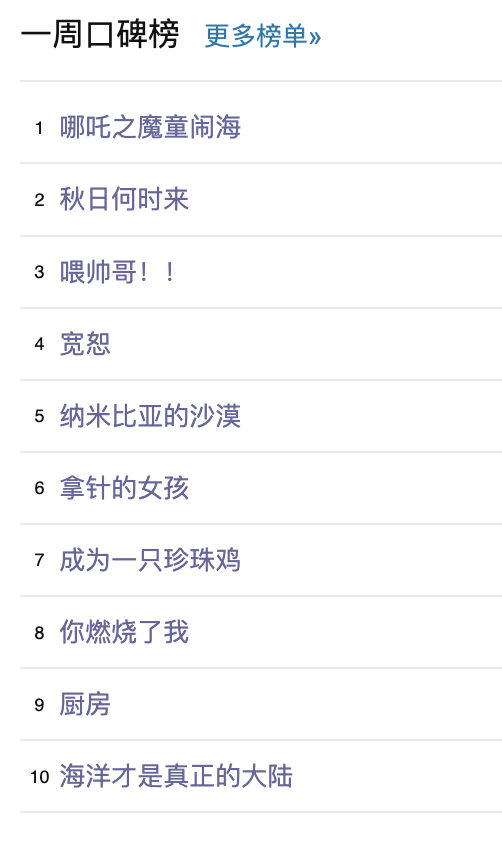 最后,还是例行附上一周豆瓣口碑榜的完整榜单: