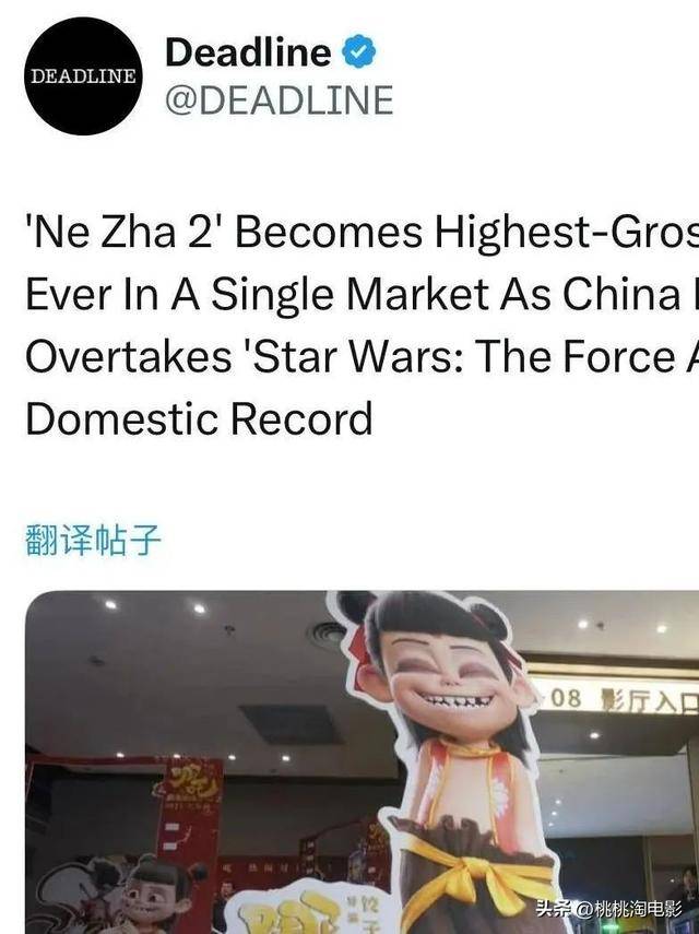 而哪吒如此强势的票房势头,经常关注的一些海外影视媒体也都在报道这事了,比如deadline、综艺、好莱坞报道者等很多好莱坞影视媒体,都有报道《哪吒2》的事情。