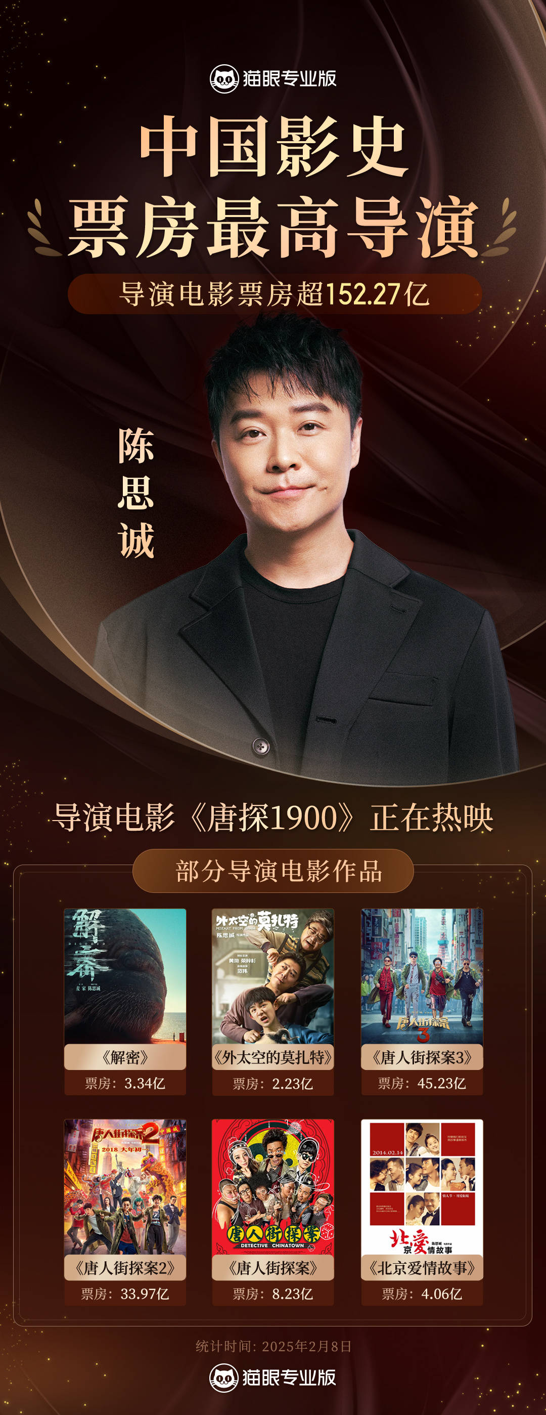 陈思诚导演电影票房超152.27亿!成为中国影史票房最高导演