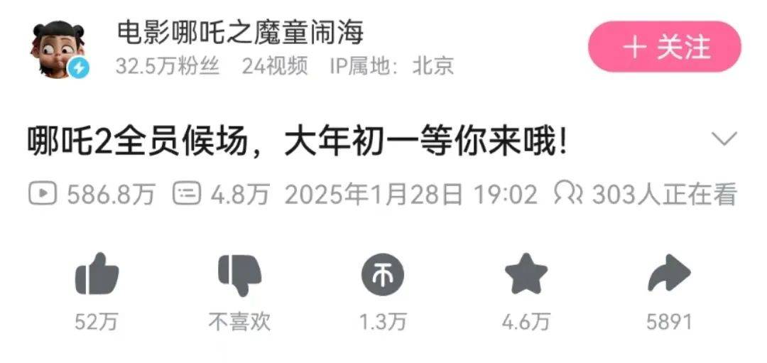 这些物料在B站发布后,播放量总计超800万次,影片“想看” 人数在预热期迅速增长至50万 。