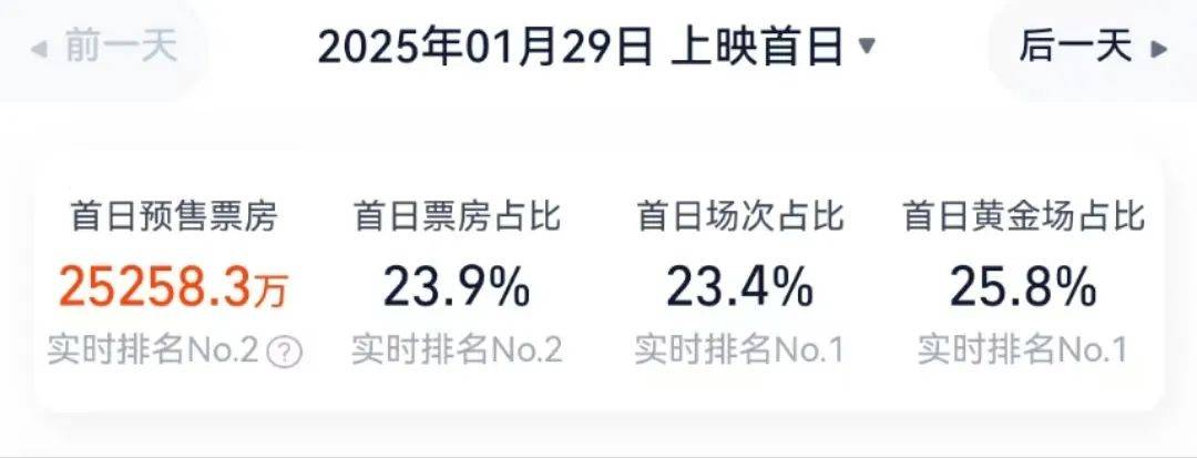 正式上映期,猫眼专业版显示,在下午18点 - 20点的黄金观影时段,票房收入占首日总票房的25%,但较同档期同类型影片的平均占比低了3%。