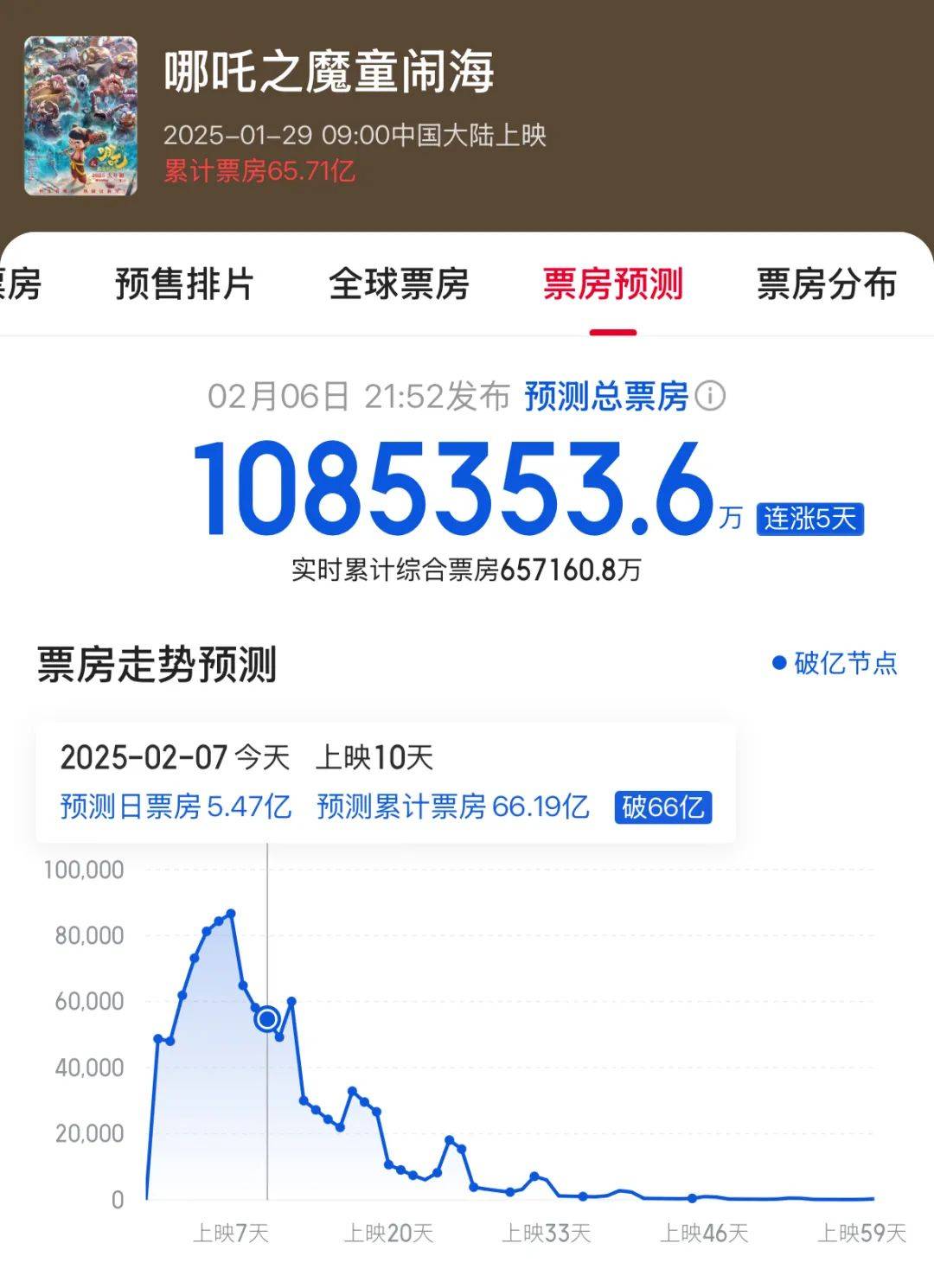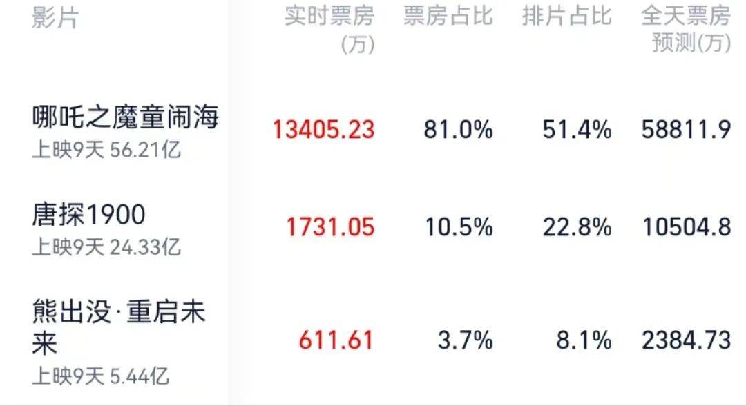 △ 截止发稿日,《哪吒之魔童闹海》总票房预估超过108亿人民币