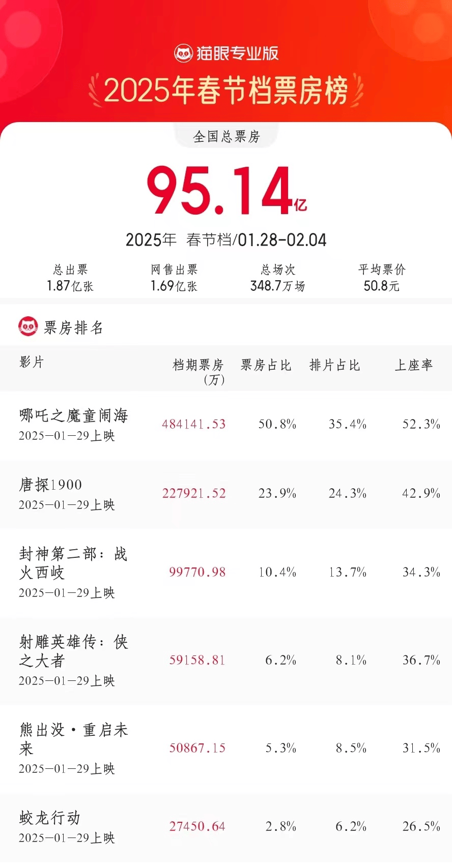 95.14亿元,这是今年春节档交出的答卷。