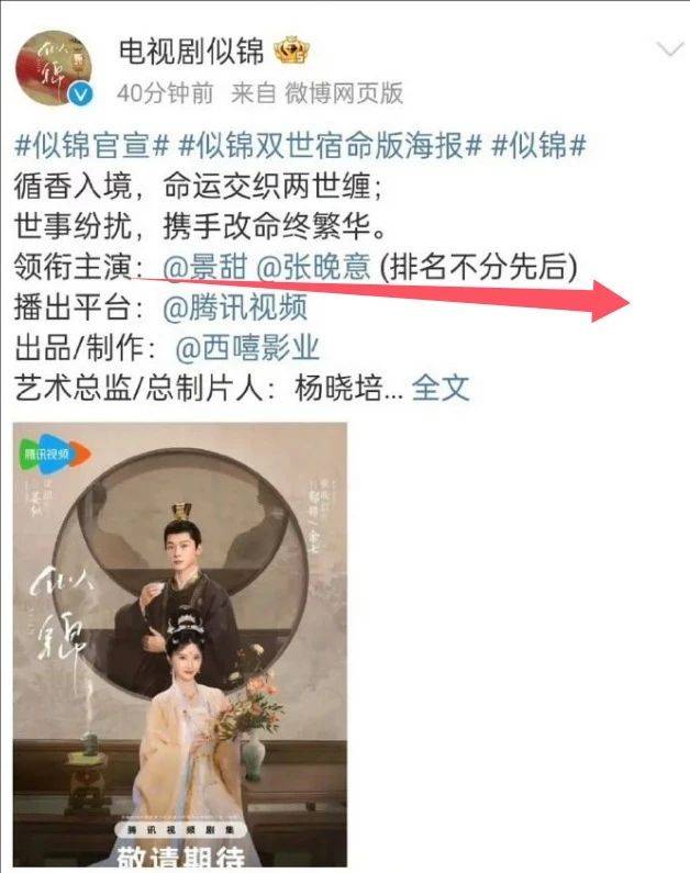 最近景甜和张晚意合作的作品引发不少争议,在官宣时,有不少网友发现,景甜和张晚意的番位是“平番”,即两人的排名不分先后。