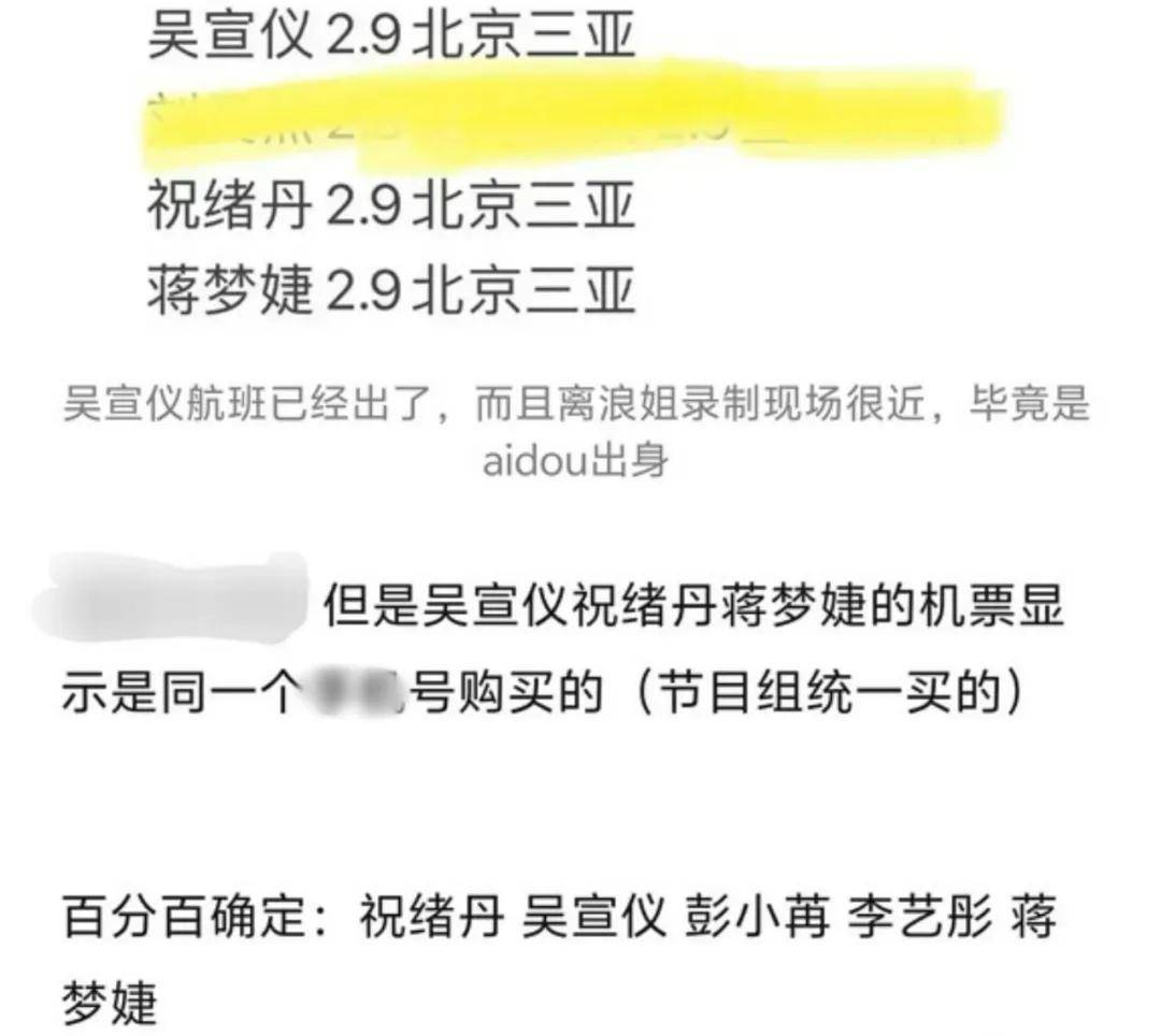 比如初名单上有的祝绪丹和蒋梦婕,据传工作人员已经把她们和不在名单上的吴宣仪的机票都安排好了。因此祝绪丹和蒋梦婕,大概率是会参加录制的。