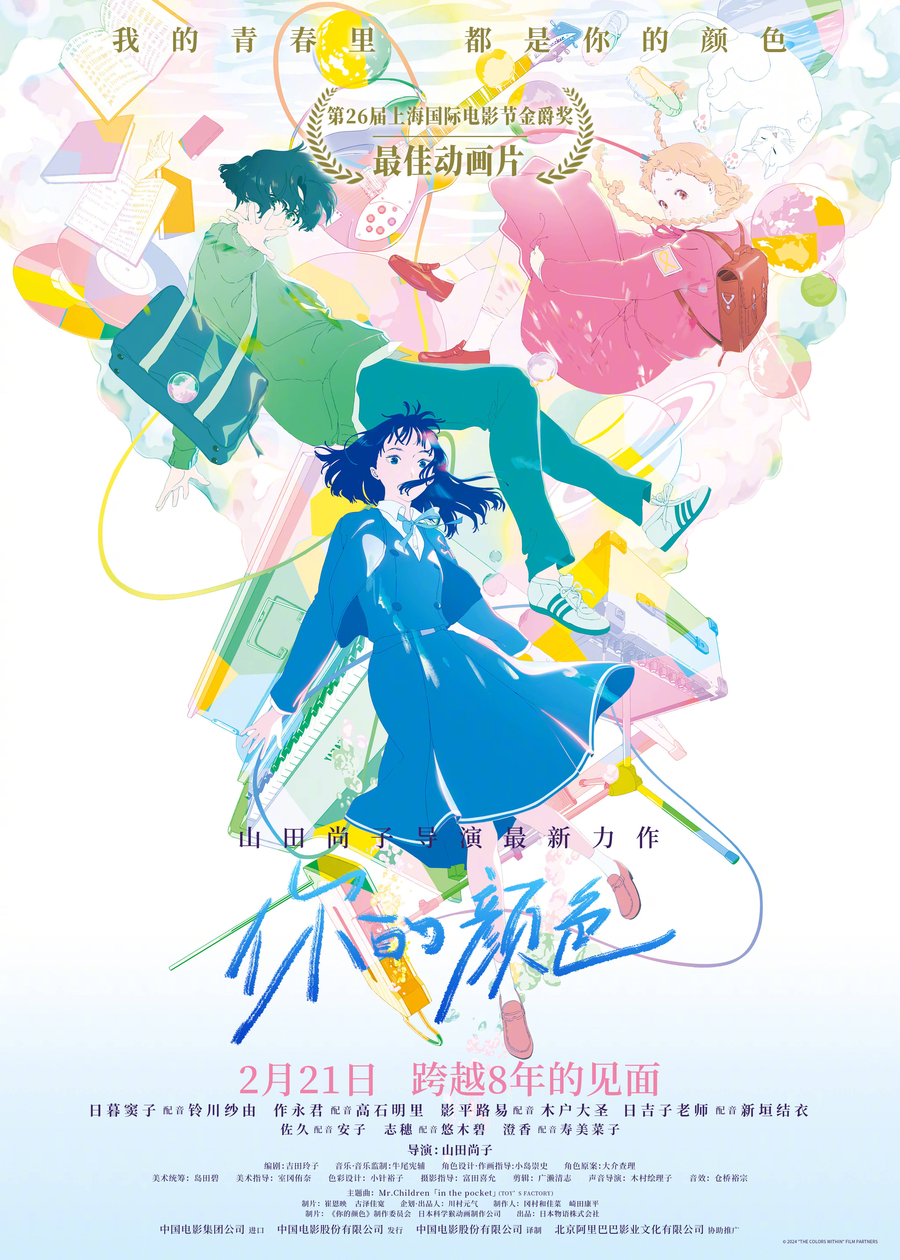电影《你的颜色》由山田尚子导演,吉田玲子编剧,牛尾宪辅担任音乐·音乐指导。“梦幻组合”再度创作出青春治愈神作,带来2025年春季大银幕第一抹“治愈色”。影片由铃川纱由、高石明里、木户大圣、新垣结衣配音,将于2月21日在内地正式上映。