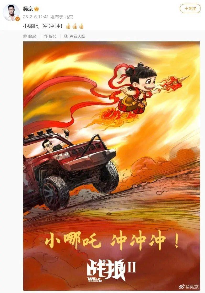 2月6日,曾主演《战狼》系列《长津湖》的武打明星吴京发图祝贺《哪吒2》票房再创新纪录。他估计已经认输了,毕竟他主演《长津湖》《战狼2》,在《哪吒2》面前弱爆了,光靠民族主义意淫,活该被时代淘汰了!