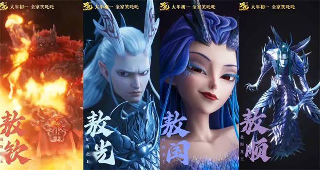 《哪吒1》的彩蛋中,观众已经见识了四海龙王的雏形,《哪吒2》中,龙王们的龙形和人形也进一步细化,每每登场都令人震撼不已。