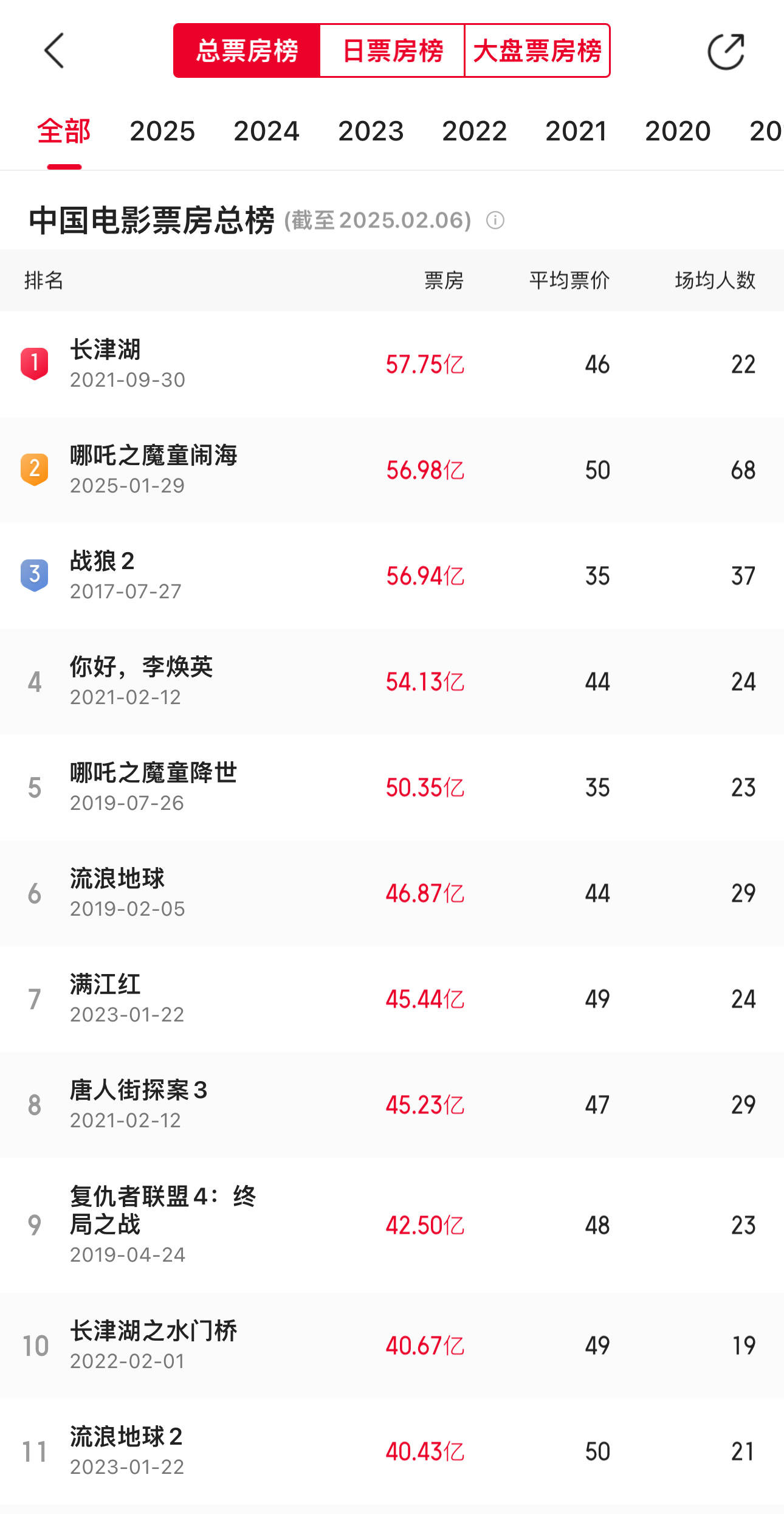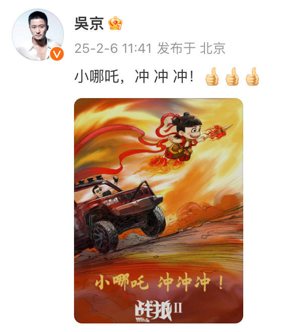 搜狐娱乐讯 2月6日,网络平台数据显示,《哪吒之魔童闹海》票房已突破56.98亿元,超越《战狼2》成为中国电影票房总榜第二,距离第一名《长津湖》还差七千万票房。吴京也在社交平台发文祝贺:“小哪吒,冲冲冲!”