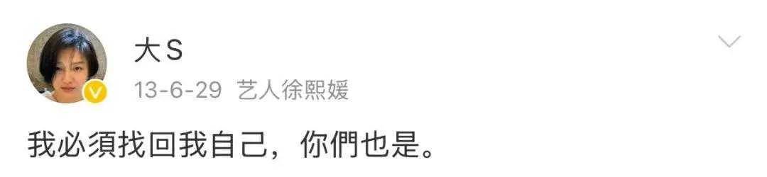 2013年,在生育之前,她曾经发过一条微博,“我必须找回我自己,你们也是。”