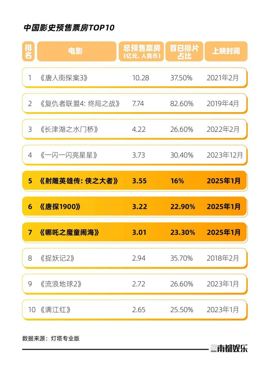 另一方面,《唐探1900》和《哪吒之魔童闹海》在预售票房同样有着不俗的表现。
