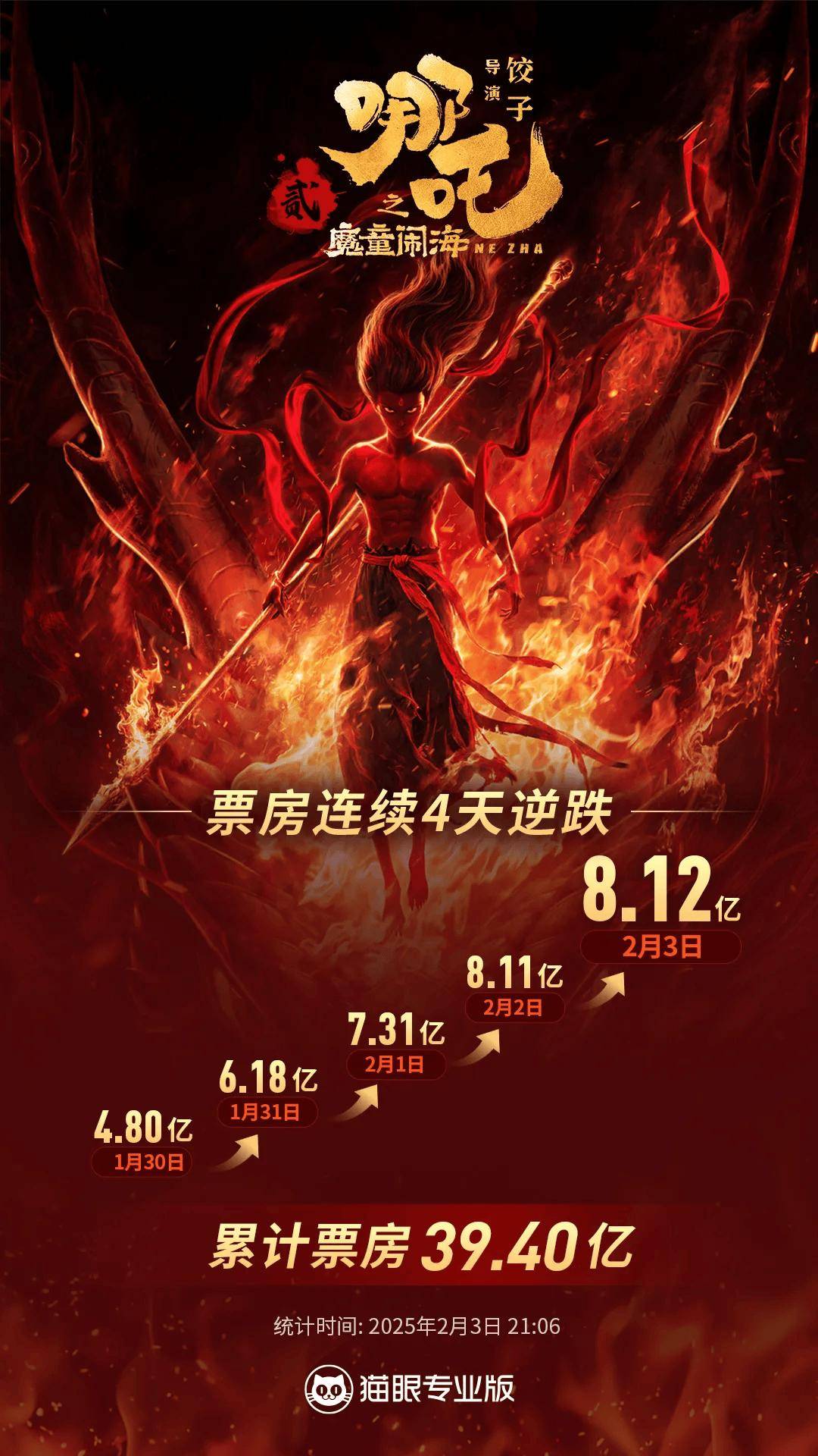 震撼精美的视效、兼具爽感及深度的内容,以及细腻独特的人物设计,帮助《哪吒之魔童闹海》迅速形成口碑发酵、出圈。 大年初三开始,影片票房大幅度“逆跌”。