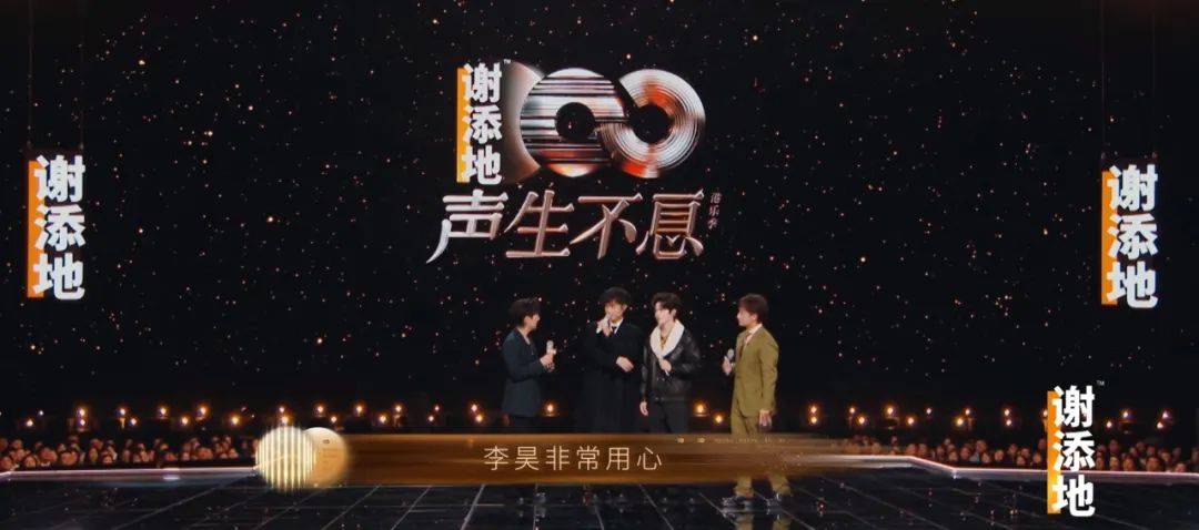 其次,平台侧在开放更多合作权限给到品牌方,身段也更加柔软。比如去年底《声生不息·大湾区季》的“谢添地”事件,巨大的品牌LOGO浮字出现在舞台各个角度,被许多观众误会为歌手名字,也因此成为出圈名梗,未尝不是一次成功的“抽象”营销。