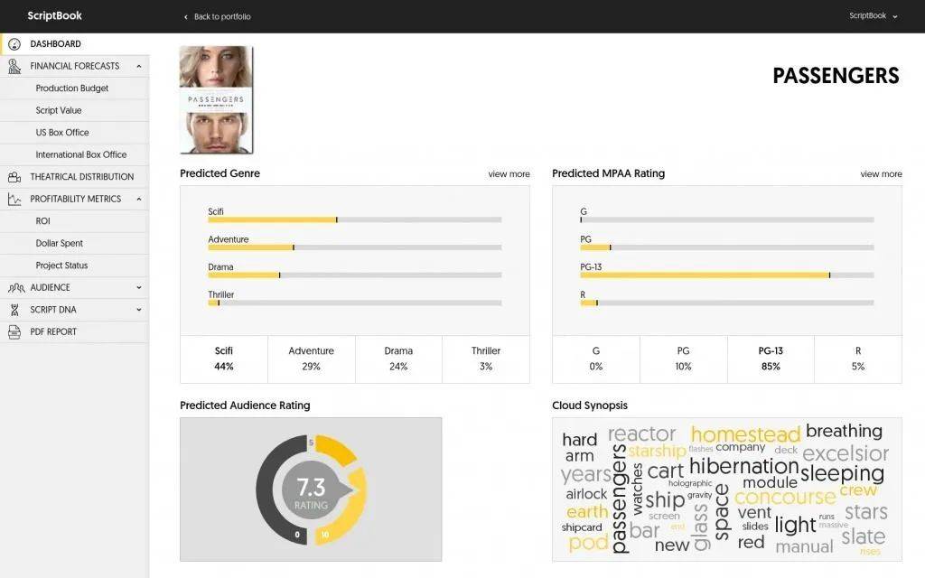 △ “Scriptbook”通过AI预测剧本的票房潜力