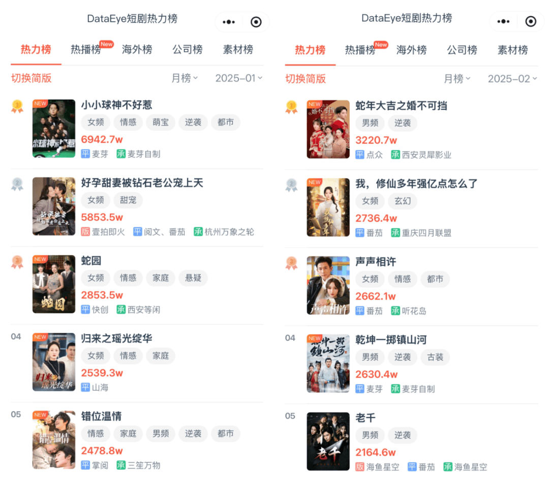 每个月都有几部频繁登上热搜的爆款微短剧,演员的身价迅速上涨。这个微短剧春节档,短视频平台、长视频平台都推出了自家的片单。越来越多的长剧集公司、长剧从业者也纷纷入局。