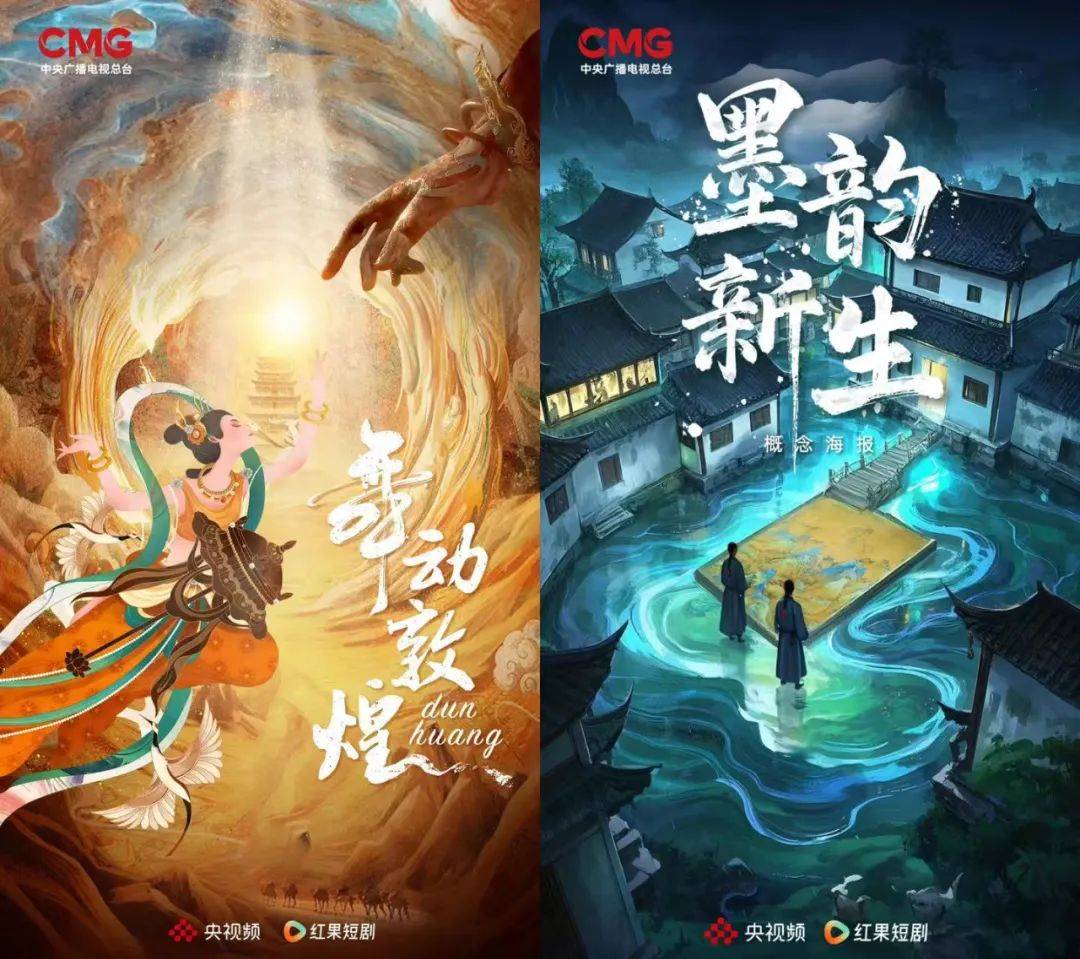 在光线官宣动画电影《红楼梦》的央视频2025首发大会上,红果短剧同样参与其中,与央视频携手官宣了《舞动敦煌》《墨韵新生》两部非遗题材微短剧。