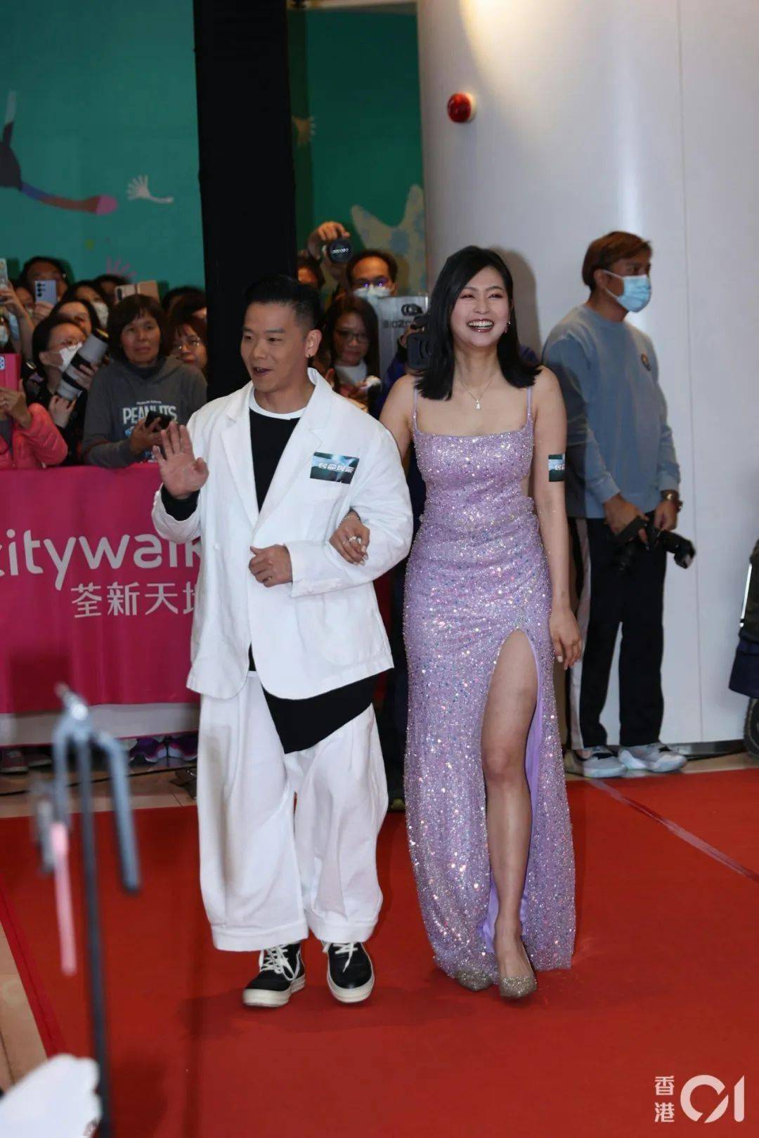 刘佩玥、刘颖旋、郭柏妍三位女主角身穿晚装惊艳现身,大晒修长美腿,尤其是郭柏妍,大露背礼服成为全场焦点。