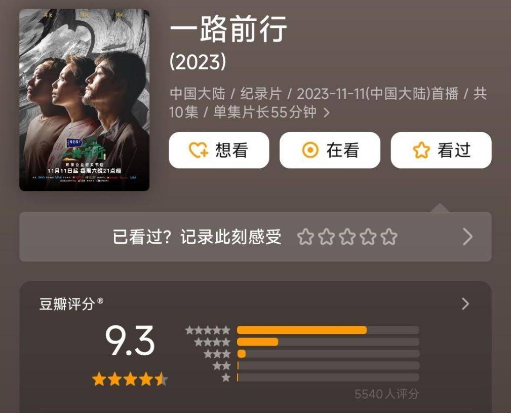 解锁《一路前行》高分密码自《一路前行》第一季惊艳亮相,便一举斩获9.3的超高评分 ,实力出圈。当第二季重磅回归,热度与口碑更是一路飙升,持续火爆!