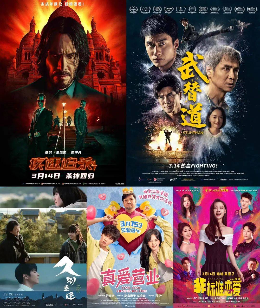 本周院线又回归冷淡期,值得关注的新片,包括基努·里维斯和甄子丹主演的好莱坞R级动作大片《疾速追杀4》,分别以武行和奇幻爱情为题材的两部港片《武替道》和《久别·重逢》,以及两部国产爱情片《真爱营业》和《非标准恋爱》。