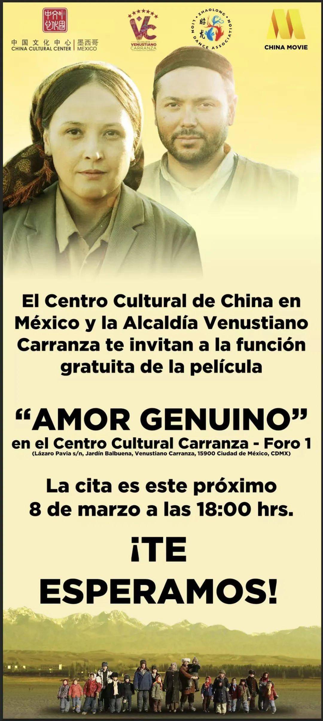 3月8日,为庆祝三八国际妇女节,纪念第四次世界妇女大会通过的 《北京宣言》和《行动纲领》发布30周年,墨西哥中国文化中心联手CCTV6电影频道、墨西哥城卡兰萨行政区、墨西哥华人华侨妇女联合总会以及墨西哥龙狮运动协会在卡兰萨行政区文化中心电影厅举办“中国电影之夜”三八妇女节特别活动,播放中国电影《真爱》。
