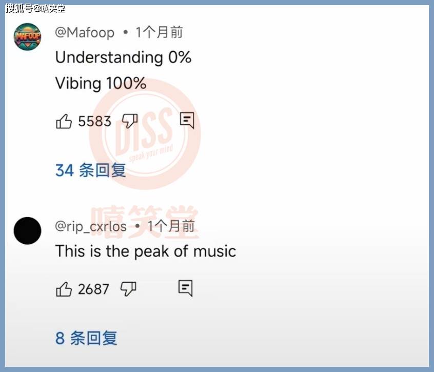在海外平台上,关于这首歌最热门的评论是“understanding0%,Vibing100%”。